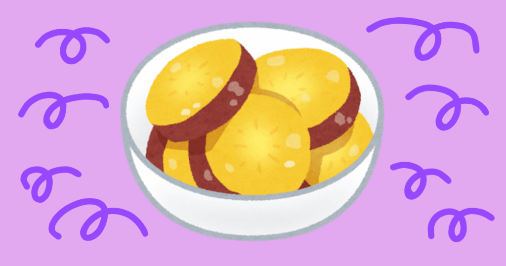 さつまいもは10月から1月ごろにかけてが美味しく食べられる旬の時期になります。8月から11月ごろに収穫されるのですが貯蔵することで甘みが増し、美味しくなるので収穫時期と旬の時期にズレがあります。さつまいもには主に食物繊維、ヤラピン、カリウム、カルシウム、マグネシウム、ビタミンA(β-カロテン)、葉酸、ビタミンCといった栄養素が含まれています。食物繊維には腸内環境を整え、便通を促進し、血糖値の急な上昇を抑えるなどの効果があります。また、さつまいもはヤラピンという成分を含み、この成分には整腸作用があり、食物繊維と合わさることで便秘解消にも効果があります。カリウムは体内の余分な塩分を排出し、高血圧やむくみの予防に効果があります。カルシウムは骨や歯の健康に役立ちます。マグネシウムはエネルギーの代謝を助け、カルシウムとともに骨を形成し、血液の循環を維持します。ビタミンA(β-カロテン)は、目や皮膚、粘膜を健康に保ち、免疫機能を正常に保つ働きがあります。葉酸は赤血球を生産するので貧血の予防になります。また、細胞の生産や再生を助けます。ビタミンCには抗酸化作用があり、動脈硬化の予防に効果が期待できます。ビタミンCは水溶性のビタミンなので熱に弱い性質があるのですが、さつまいものビタミンCはでんぷんに守られているので壊れにくく加熱しても効率よく摂取することができますよ。